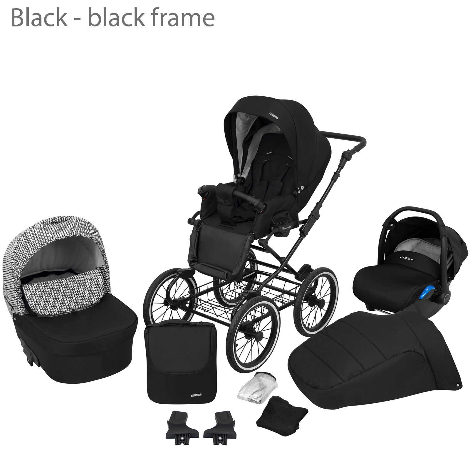 New Baby Pram Retro Set Classic Pushchair 3in1 Travel System Black -Black Frame
