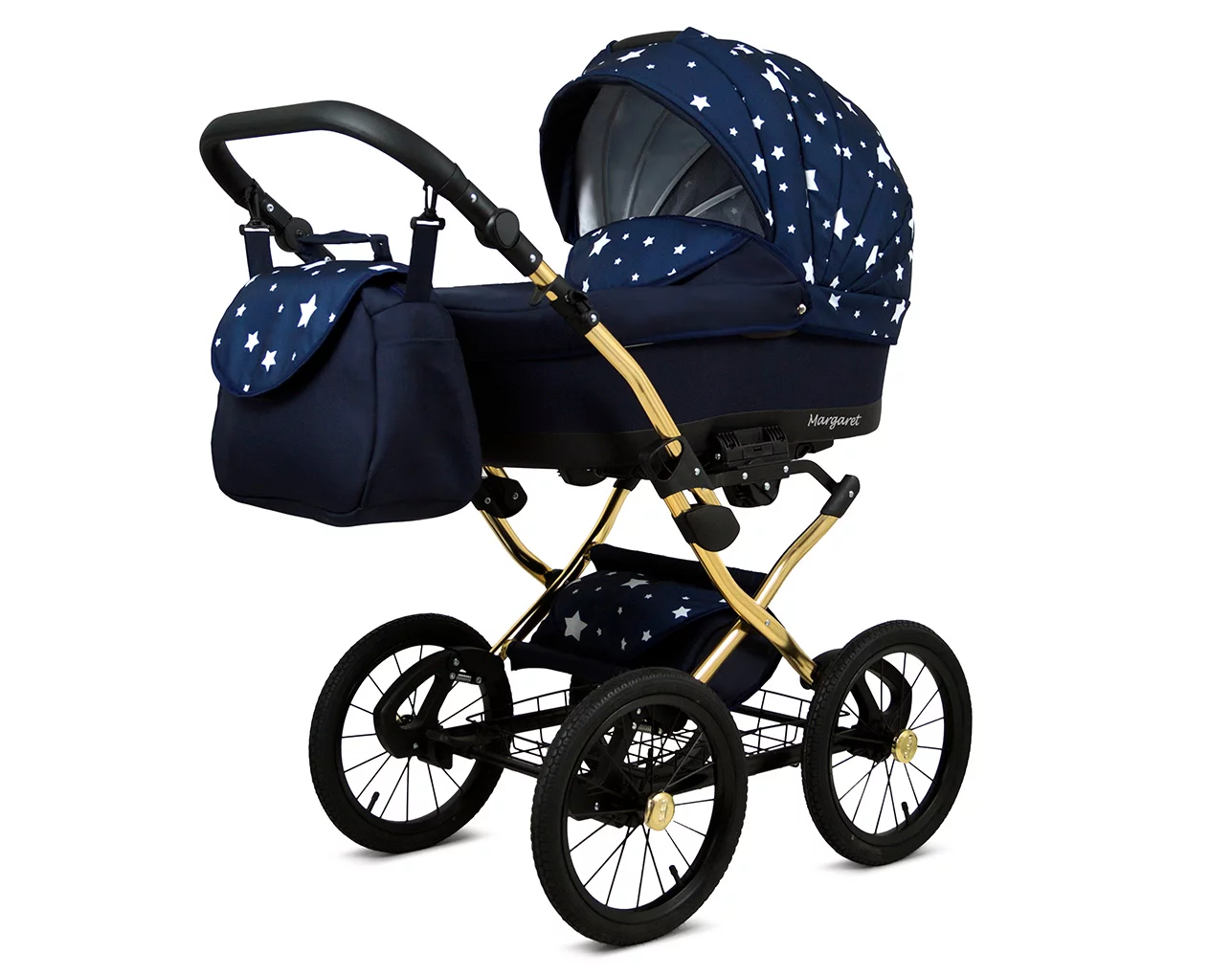 3 in 1 Luxury Stroller and Car Seat – Margaret Gold Pram Pushchair and Car seat by Babylux- In Navy Blue Star