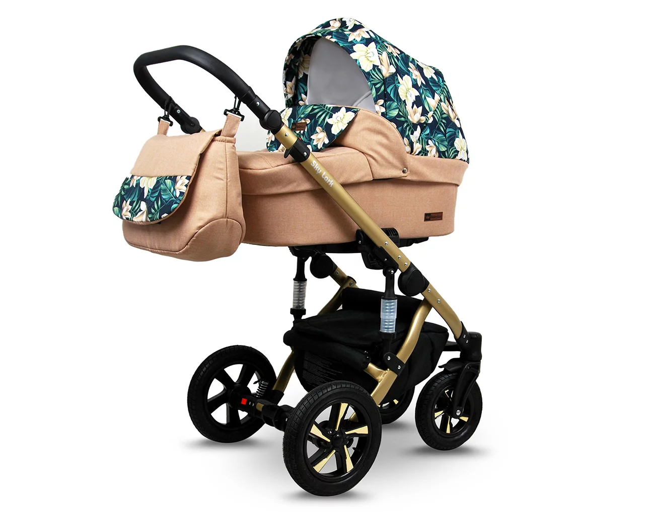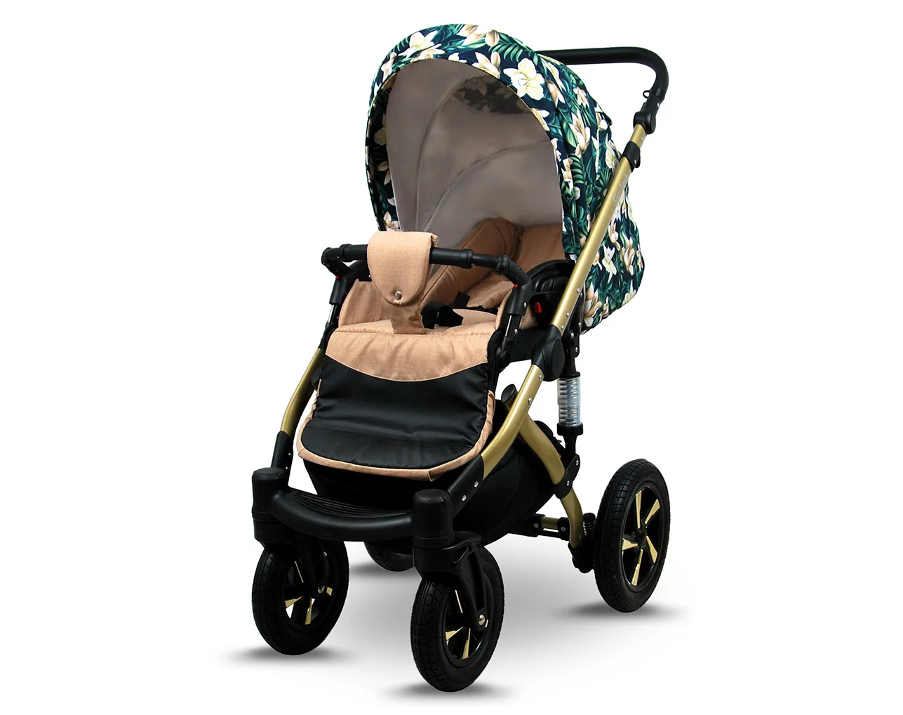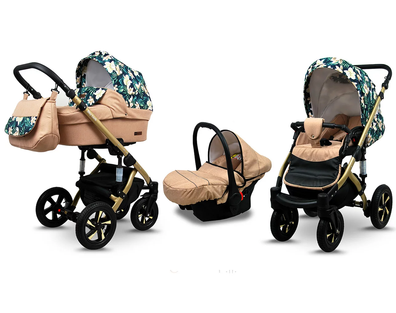 3 in 1 Luxury Stroller and Car Seat – Sky Lark Pram Pushchair and Car seat by Babylux- In Creamy Lillies
