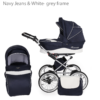 3 in 1 Baby Pram Buggy Travel System Car Seat Pushchair from Birth Girls Boys in Navy Jeans & White