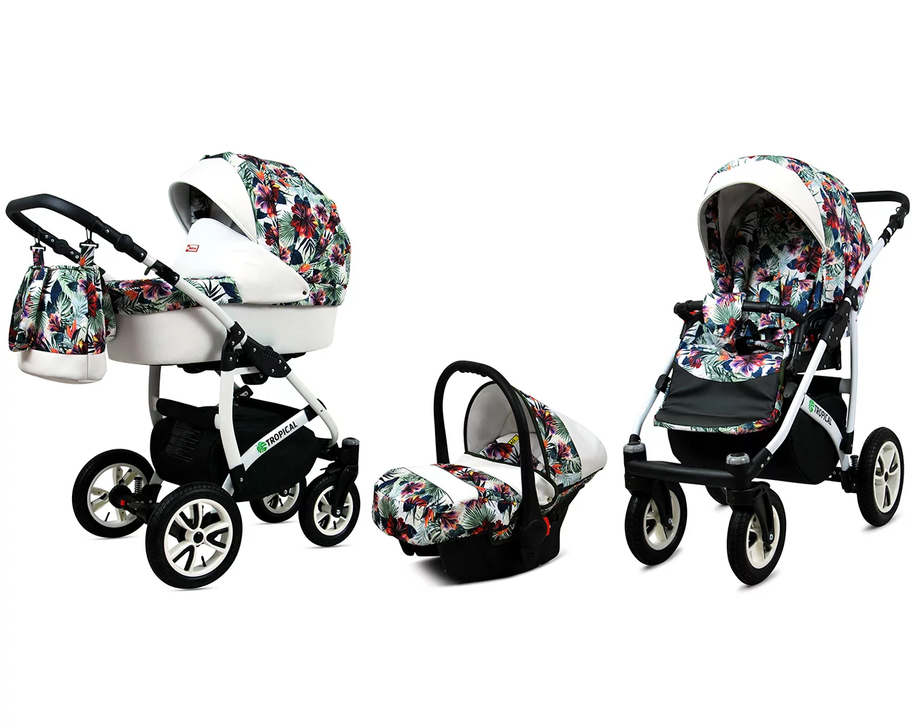 3 in 1 Luxury Stroller and Car Seat – Tropical Pram Pushchair and Car seat by Babylux- In Chilli Flowers