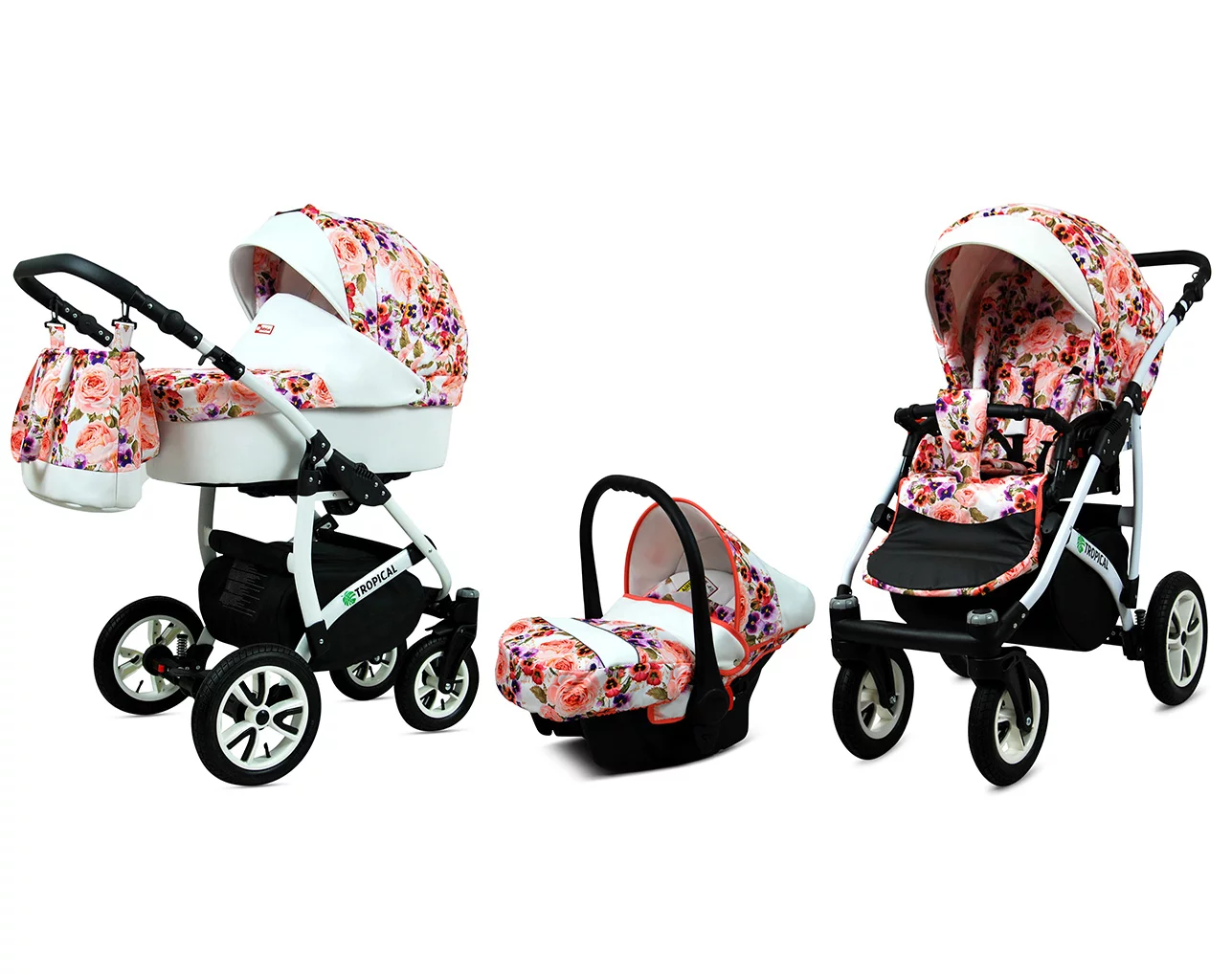 3 in 1 Luxury Stroller and Car Seat – Tropical Pram Pushchair and Car seat by Babylux- In Pansies And Roses