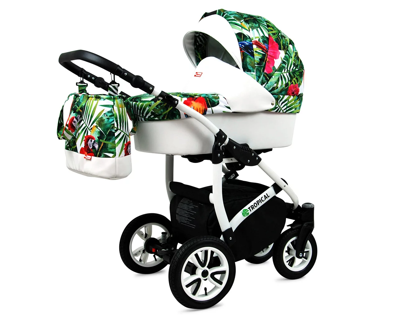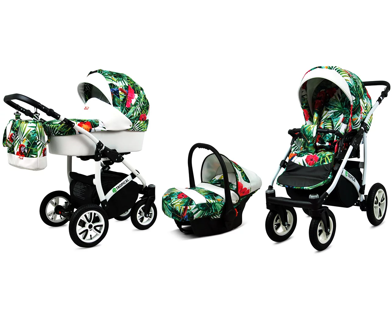 3 in 1 Luxury Stroller and Car Seat – Tropical Pram Pushchair and Car seat by Babylux- In Parrots In The Tropics