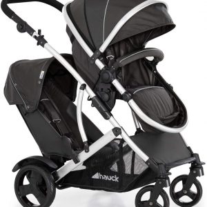 the Hauck Duett 2 Travel System – The clever tandem ideal for siblings and the perfect solution for 2 children of different ages. For siblings the Duett II is a true quick-change artist. The carry cot can be converted to a sporty (fully reversible) pushchair seat and the second seat is fully removable, leaving you with just a (2 way facing) single stroller when required.The stacked seat units offer plenty of room for your newborn and your older child. Included is the Hauck Zero Plus Comfort Group 0+ infant car seat suitable from birth up to 13kg (approx 12-15 months). Complete with headhugger, shoulder pads and sun / wind canopy the car seat It fixes to the Hauck Duett Tandem 2 Stroller using the adaptors provided and fits into your vehicle using your cars 3 point seat belt.