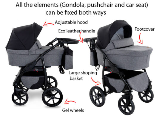 3 in 1 Baby Pram Boston Stroller Trio Travel System with Car Seat in Beige