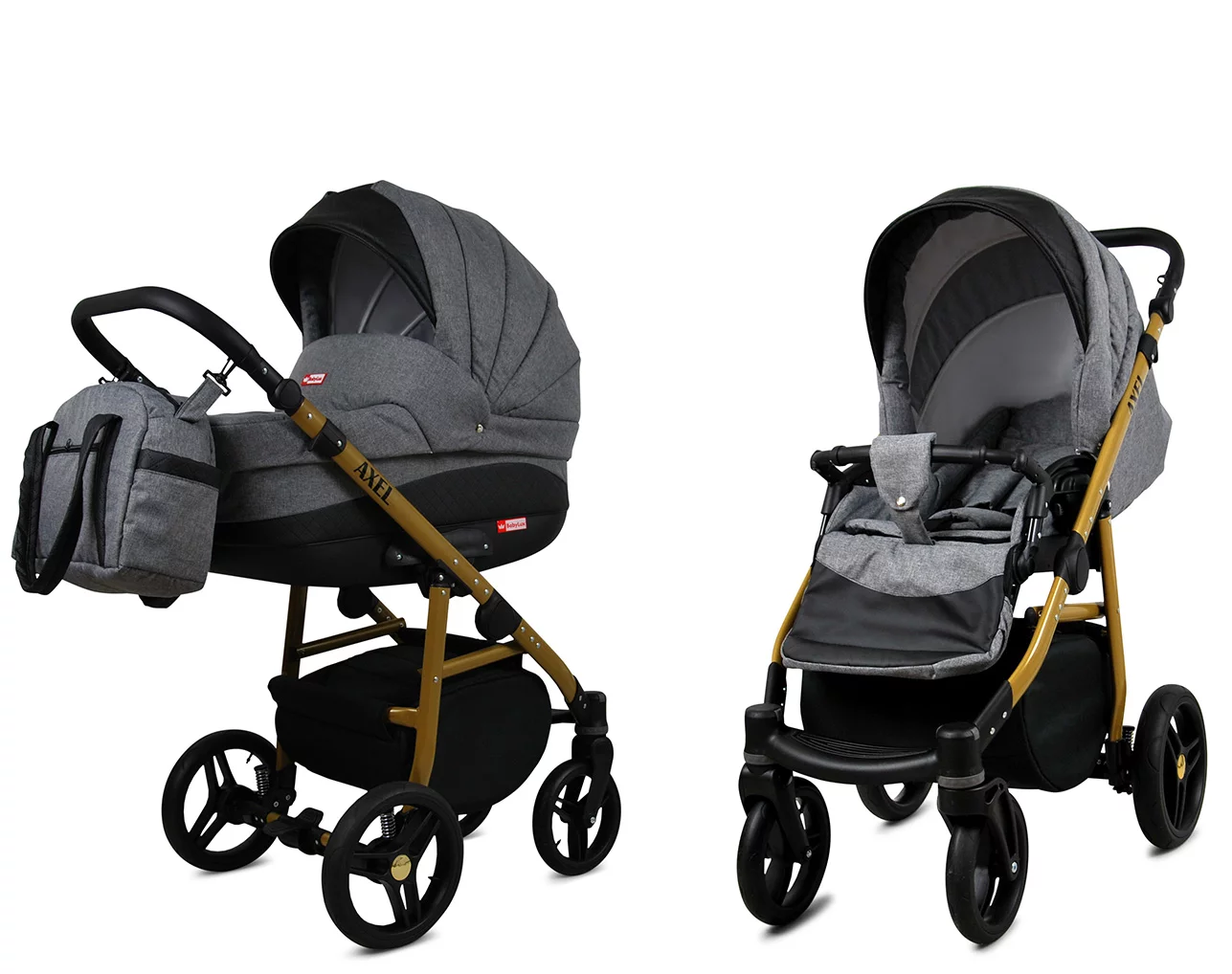 The Axel 3-in-1 Stroller from the renowned European brand BabyLux is a versatile solution for parents. Designed to function as a deep stroller (pram), pushchair, and car seat, it provides ultimate convenience by allowing the car seat to be mounted on the stroller frame.