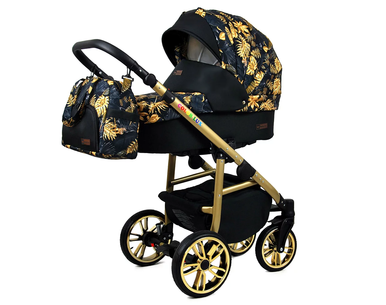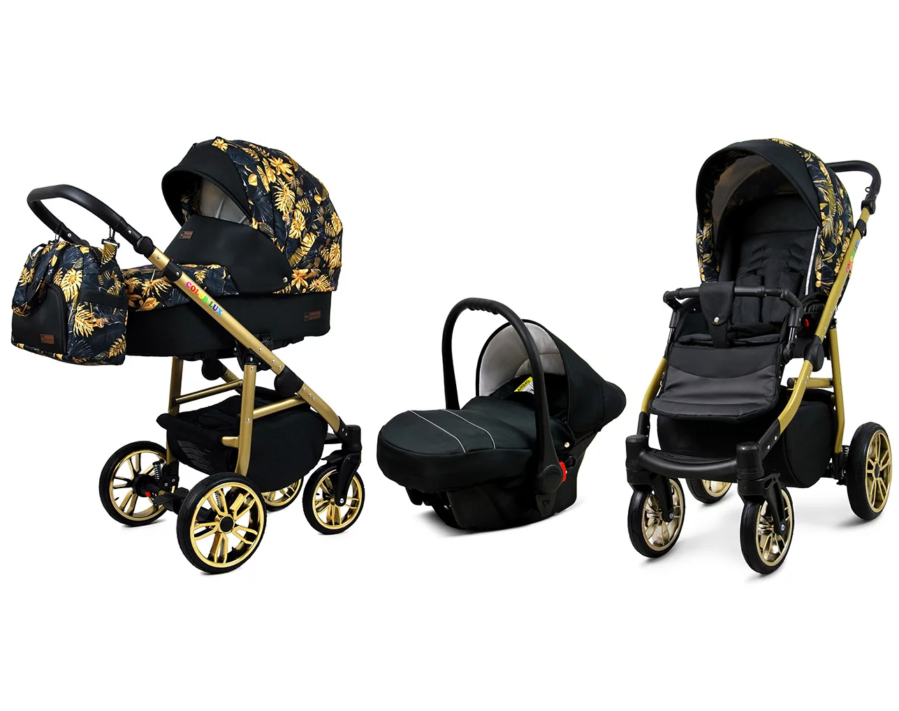 3 in 1 Luxury Stroller and Car Seat – Color Lux Pram Pushchair and Car seat by Babylux- In Gold Jungle