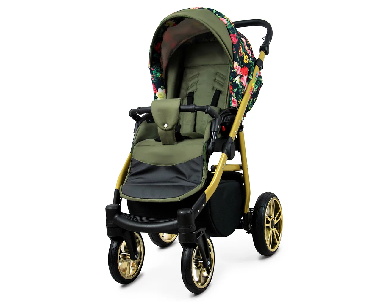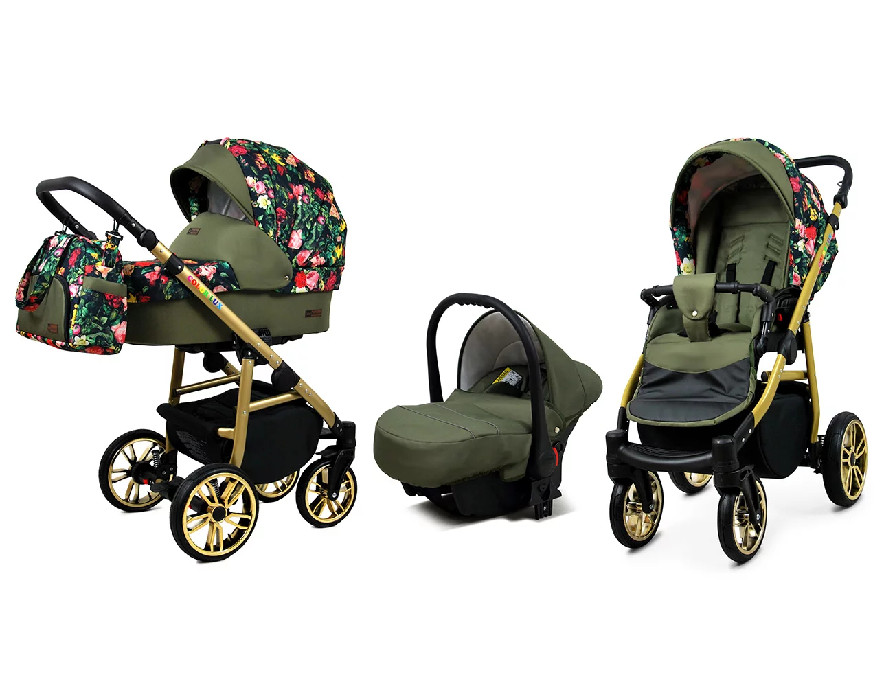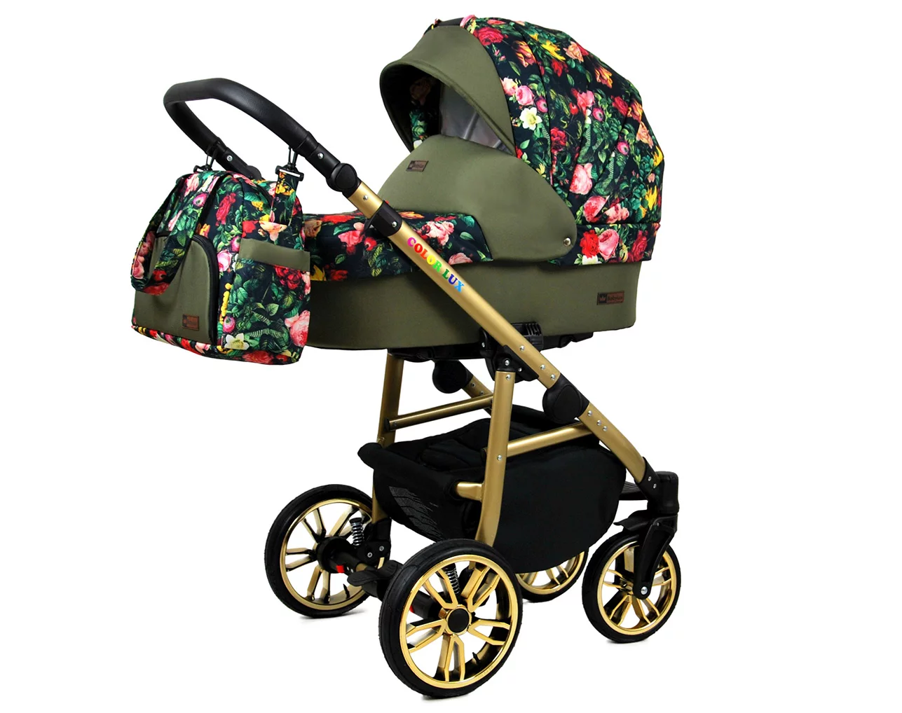 3 in 1 Luxury Stroller and Car Seat – Color Lux Pram Pushchair and Car seat by Babylux- In Roses With Tulips On Black