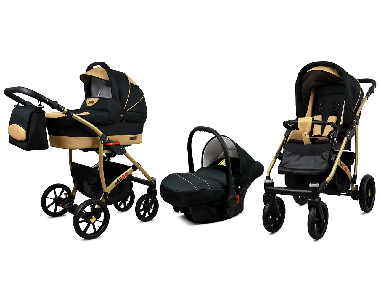 3 in 1 Luxury Stroller and Car Seat – Largo Pram Pushchair and Car seat by Babylux- In Black Coffee