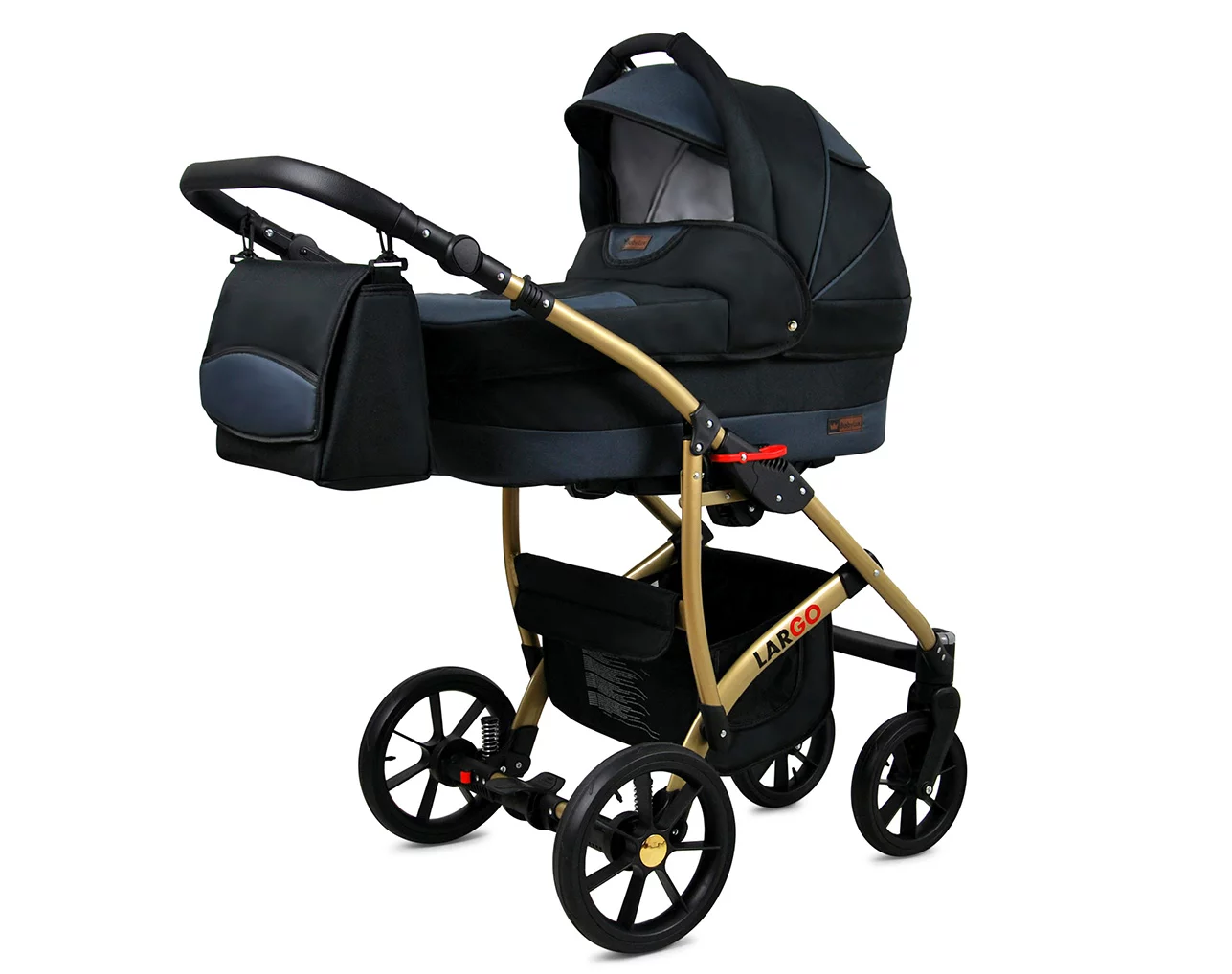 3 in 1 Luxury Stroller and Car Seat – Largo Pram Pushchair and Car seat by Babylux- In Black Grey