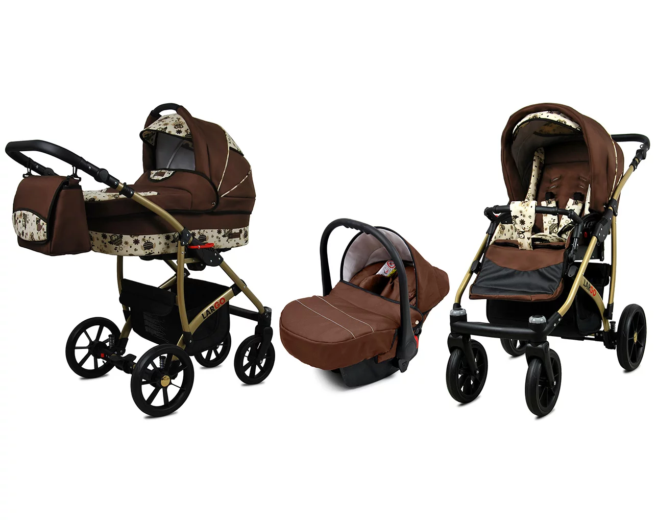 3 in 1 Luxury Stroller and Car Seat – Largo Pram Pushchair and Car seat by Babylux- In Brown Owl
