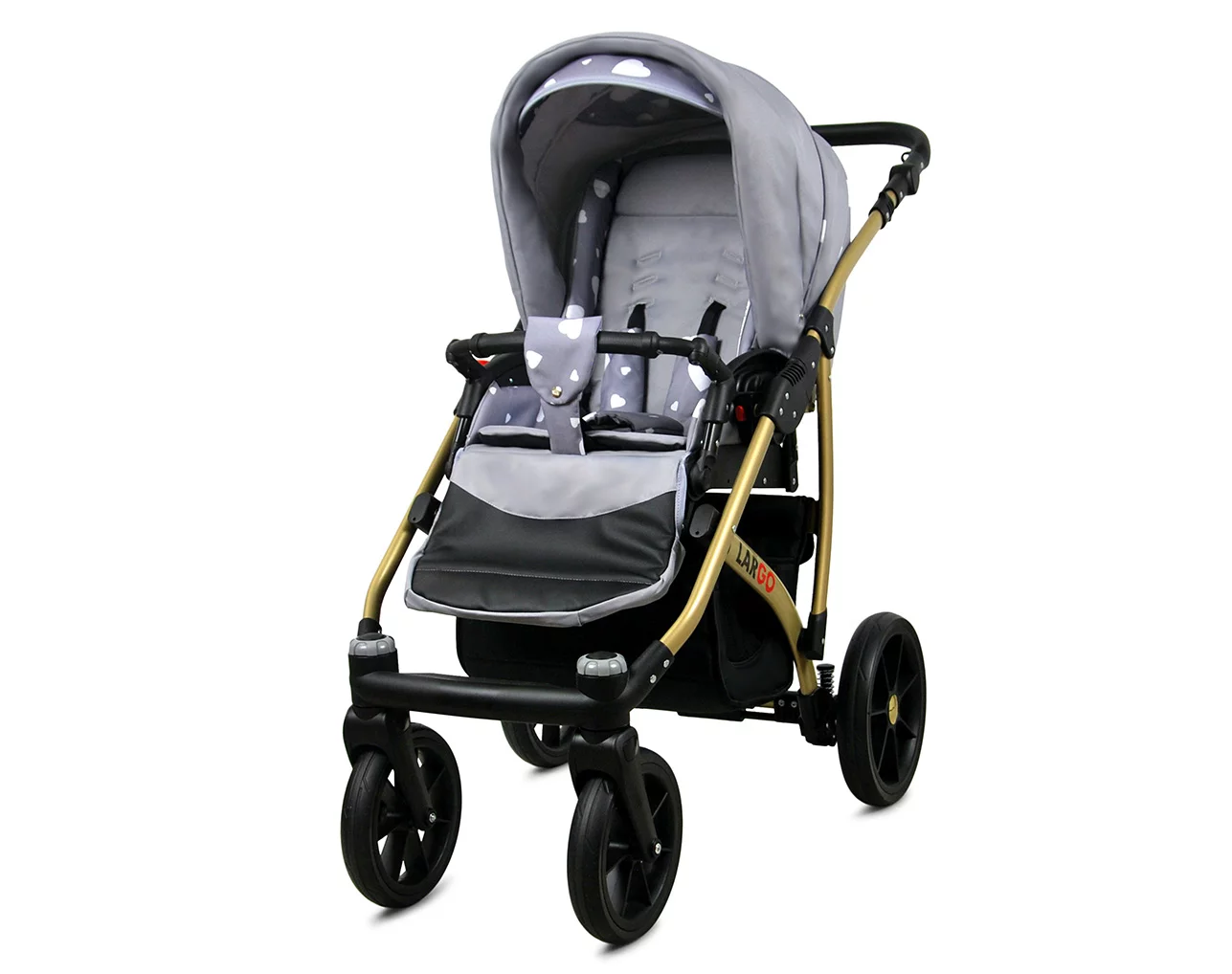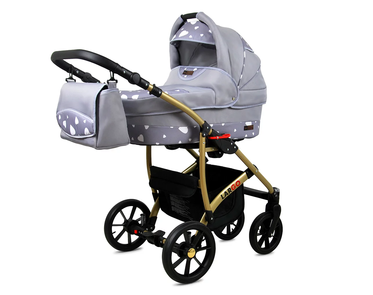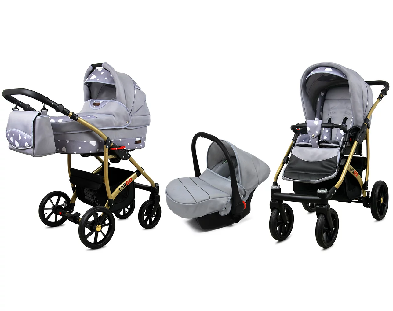 3 in 1 Luxury Stroller and Car Seat – Largo Pram Pushchair and Car seat by Babylux- In Silver Hearts