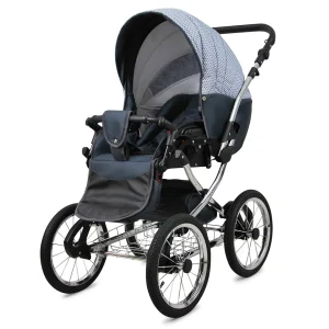 Designed for newborns and infants up to 9 kg, the Margaret Exclusive pram features a lightweight aluminum frame with a foldable canopy and soft cotton lining, ensuring maximum comfort and ventilation.