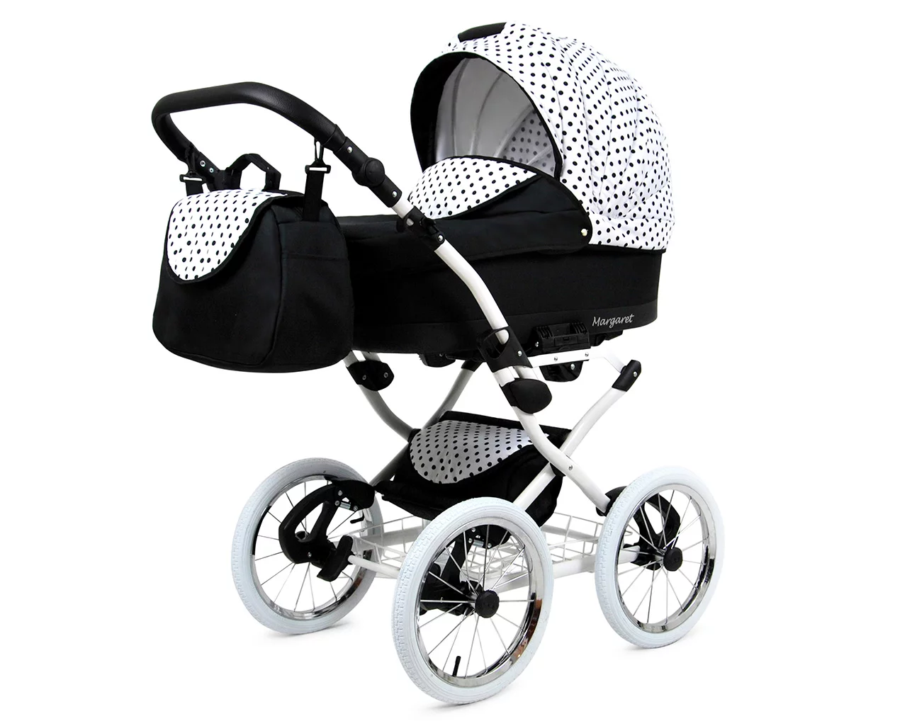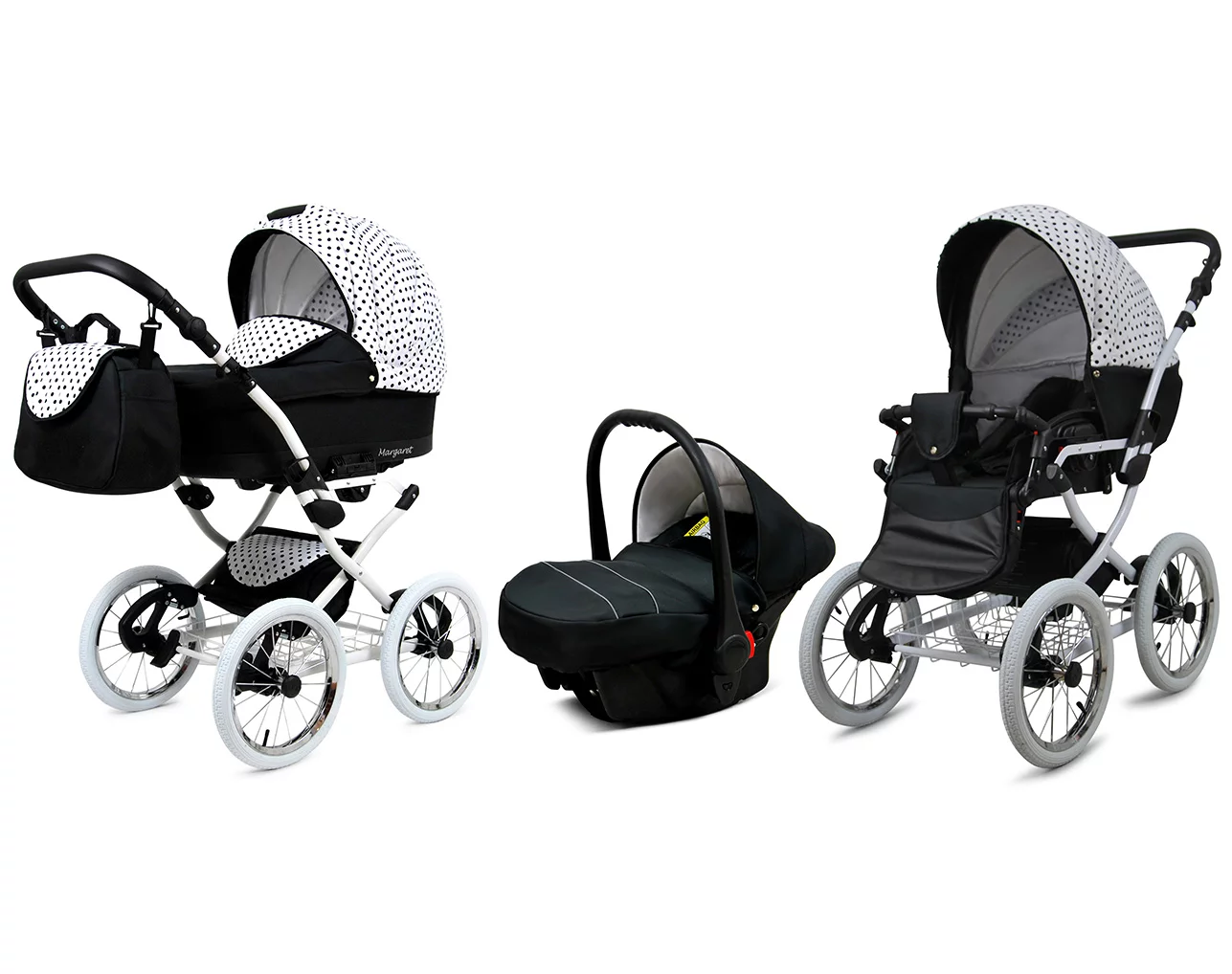 The Margaret White 3-in-1 Stroller from the renowned European brand BabyLux is a versatile solution for parents. Designed to function as a deep stroller (pram), pushchair, and car seat, it provides ultimate convenience by allowing the car seat to be mounted on the stroller frame.