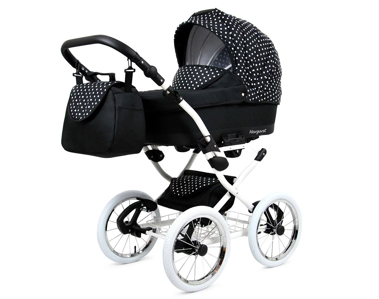 3 in 1 Luxury Stroller and Car Seat – Margaret White Pram Pushchair and Car seat by Babylux- In White Dots
