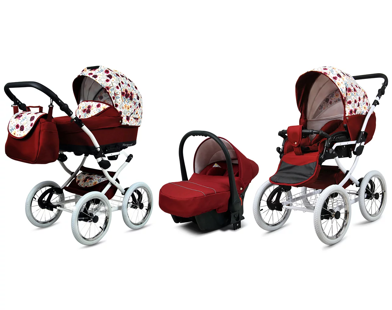 3 in 1 Luxury Stroller and Car Seat – Margaret White Pram Pushchair and Car seat by Babylux- In