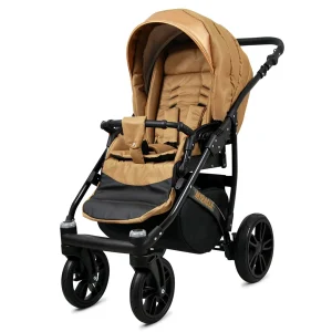 This stroller is designed with both style and function in mind. Made from premium Polish Gold fabrics, it ensures protection against water and fading while maintaining optimal temperature and air circulation for your child.