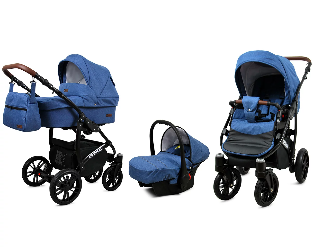 3 in 1 Luxury Stroller and Car Seat – Optimal Pram Pushchair and Car seat by Babylux- In Blue Flex