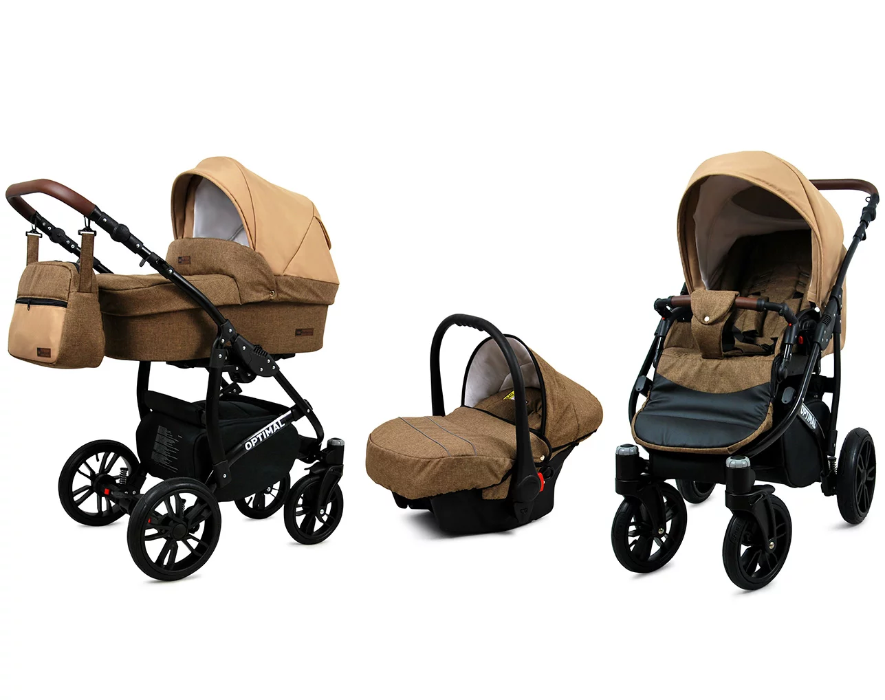 3 in 1 Luxury Stroller and Car Seat – Optimal Pram Pushchair and Car seat by Babylux- In Chocolate