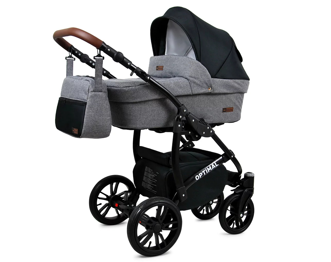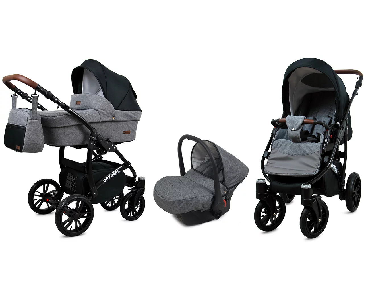 3 in 1 Luxury Stroller and Car Seat – Optimal Pram Pushchair and Car seat by Babylux- In Grey Flex Black