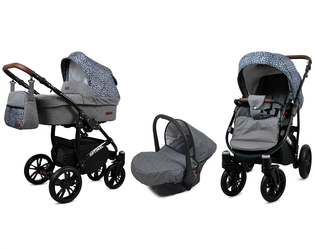 The Optimal 3-in-1 Stroller from the renowned European brand BabyLux is a versatile solution for parents. Designed to function as a deep stroller (pram), pushchair, and car seat, it provides ultimate convenience by allowing the car seat to be mounted on the stroller frame.