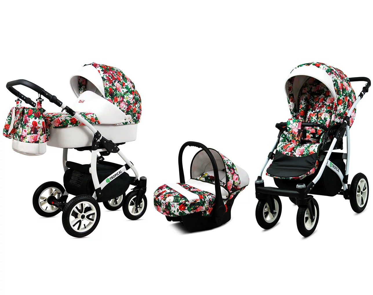 3 in 1 Luxury Stroller and Car Seat – Tropical Pram Pushchair and Car seat by Babylux- In Small Roses