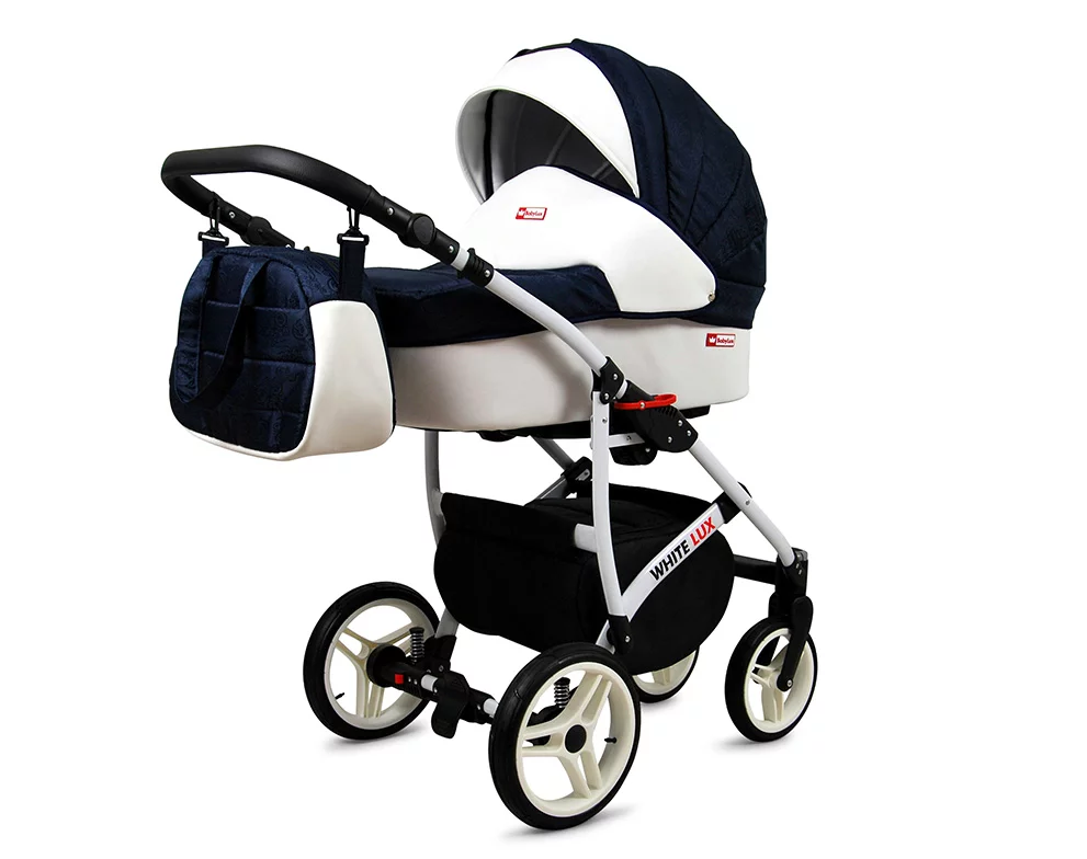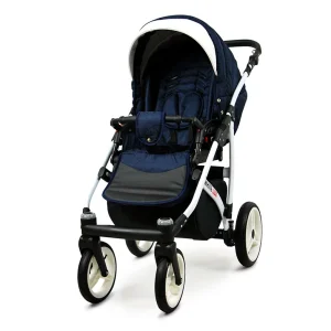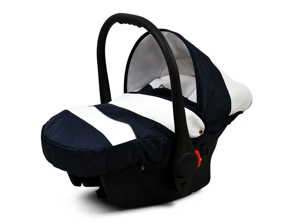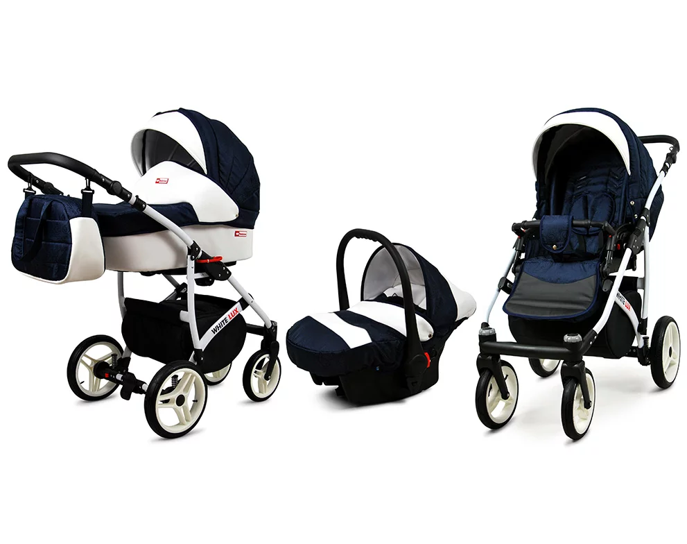 3 in 1 Luxury Stroller and Car Seat – White Lux Pram Pushchair and Car seat by Babylux- In Navy Blue