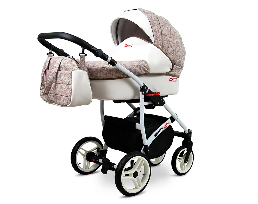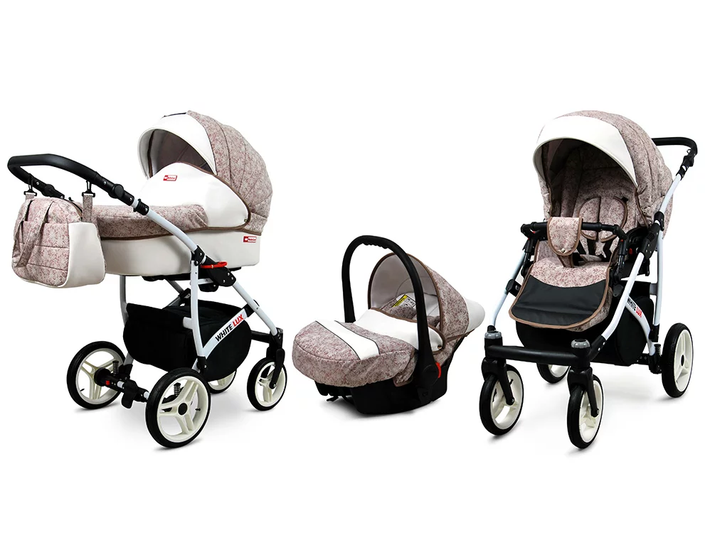 3 in 1 Luxury Stroller and Car Seat – White Lux Pram Pushchair and Car seat by Babylux- In Sandal Tree