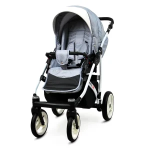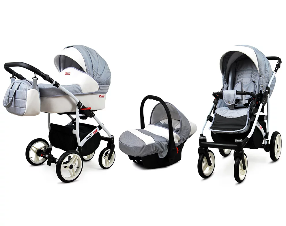 3 in 1 Luxury Stroller and Car Seat – White Lux Pram Pushchair and Car seat by Babylux- In Silver