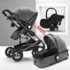 3 in 1 Stroller Urban Style Pushchair Buggy Travel Baby Pram with Car Seat In Gray with Bird Patterns
