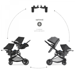 The Atlantic Twin is as versatile as your daily life with twins. Therefore, you can install the two seats or prams to your liking. Optionally, you can also combine the pushchair with one or two infant car seats (separate adaptors needed).
