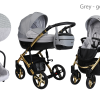 Baby Pram 3in1 Lightweight Travel System Pushchair Isofix base in grey silver frame