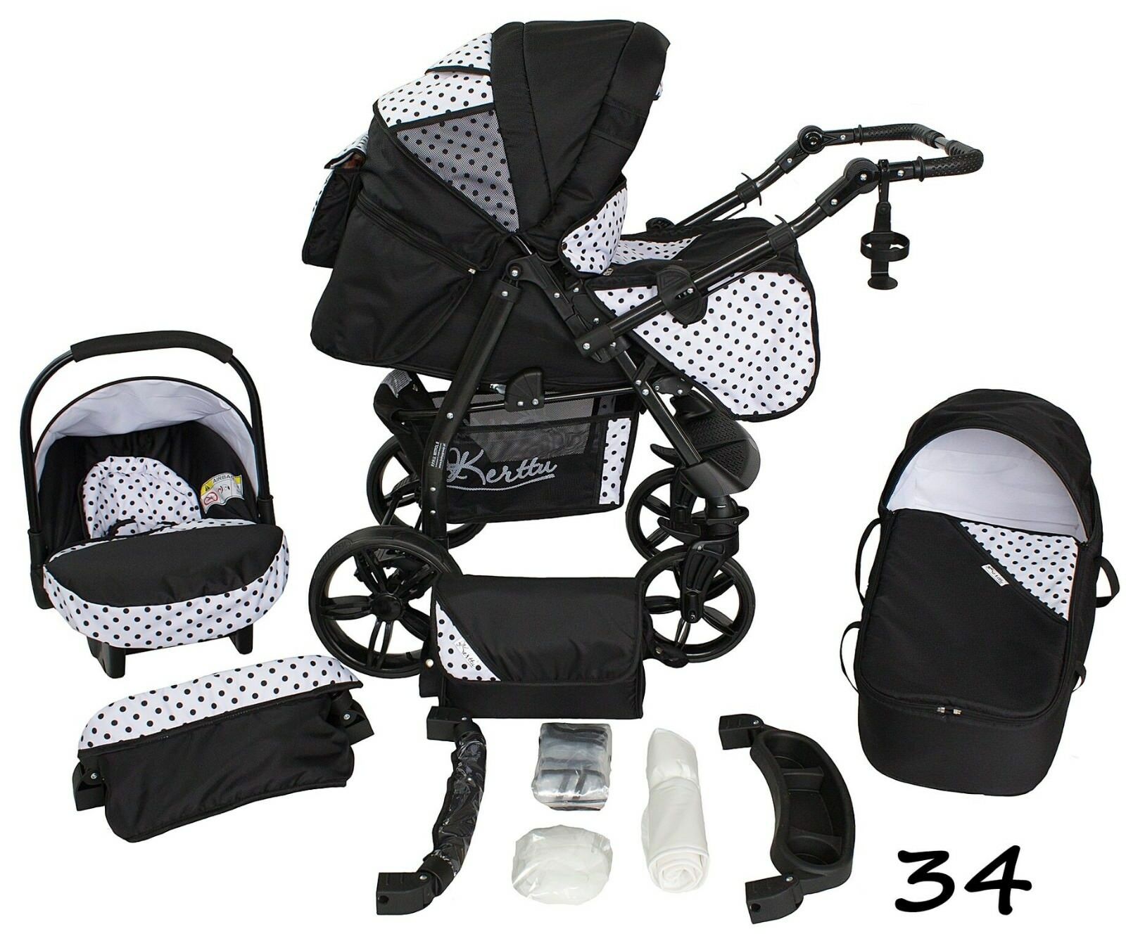 Baby Pram Pushchair Carrycot Car Seat TWIST 3in1 Travel System – TW34 Black Dots