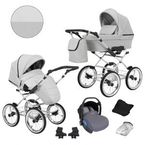 Baby Pram Retro Classic Buggy Set 3in1Travel System Eco Leather NEW 2022 -Light Grey (grey frame)
