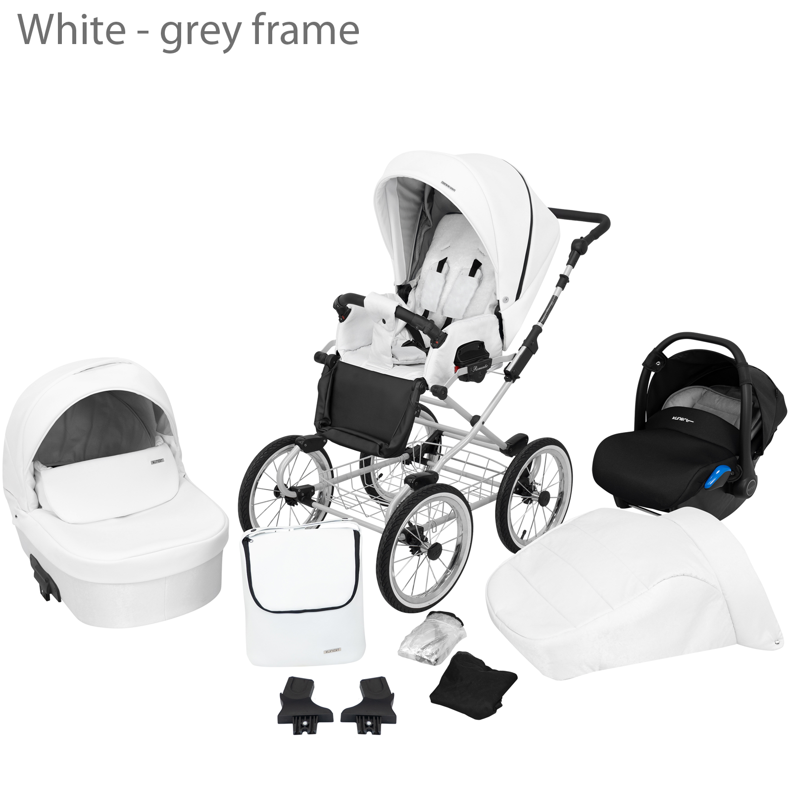 Baby Pram Retro Classic Buggy Set 3in1Travel System Eco Leather NEW 2022 – White (grey frame)