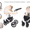 Baby Travel System Pushchair 3 in 1 Car seat Foldable Pram Buggy From Birth – Cream Jeans & Gold Leather (black frame)