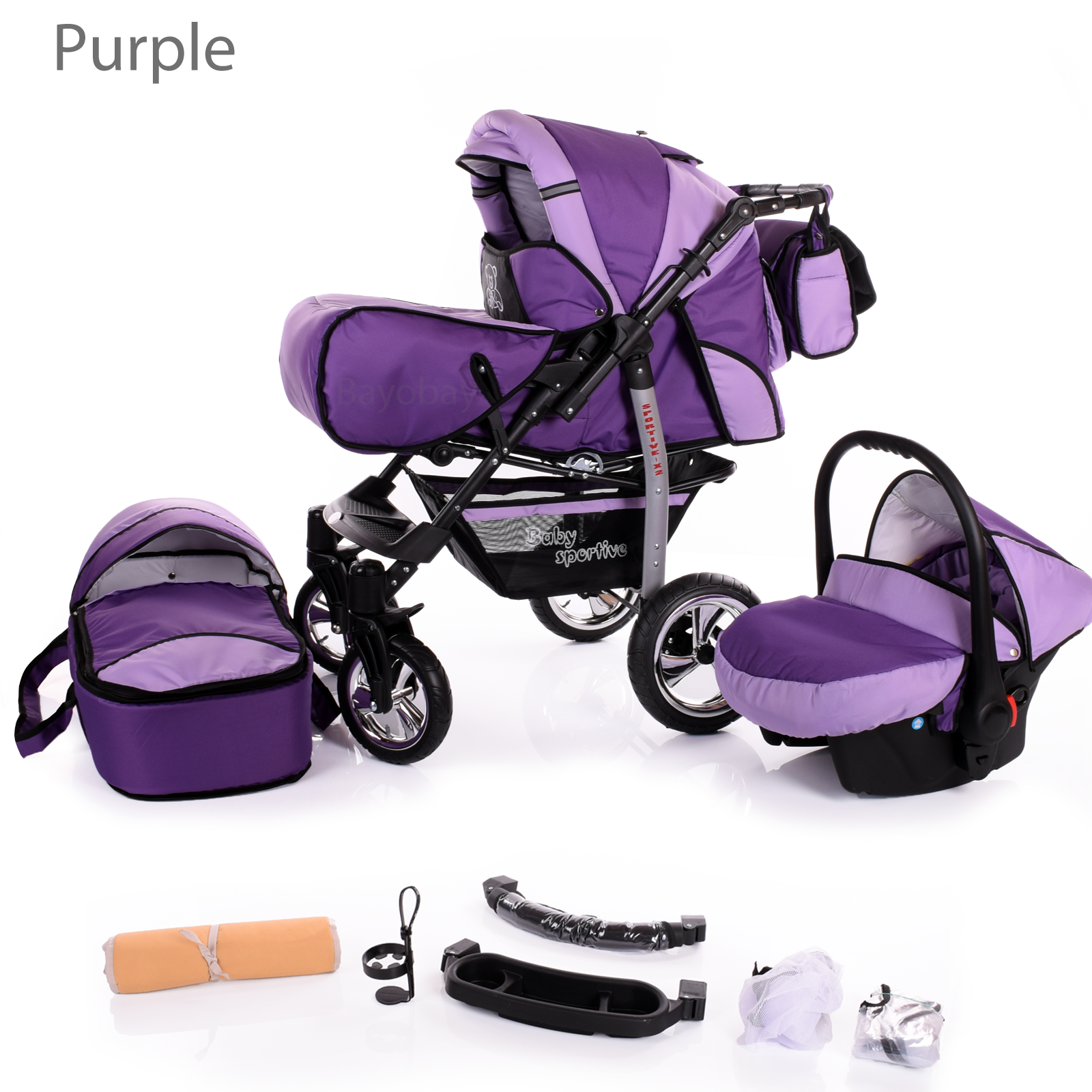 Purple Baby Pram Foldable Car Seat Travel System Set 3in1
