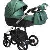 A gondola with a fashionable structure available in 3 color variants: gold, silver, and black. It is light and easy to use Design, durable structure made of aluminum with removable wheels, so you can completely disassemble the stroller for small dimensions Frame with side cutters, available in 2 colors – silver-black and gold-black. An easy and practical system of folding the frame to the small size – to the “0” position. 3 pairs of shock absorbers with adjustable suspension hardness, which increases the comfort of your child’s ride. The upholstery of the gondola booth and the walking seat have large, practical ventilation and a fold-out sun canopy. Extremely spacious and comfortable gondola (length 85 cm) with an intuitive and comfortable headrest lifting system, and a ventilation system on the bottom.