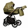 A gondola with a fashionable structure available in 3 color variants: gold, silver, and black. It is light and easy to use Design, durable structure made of aluminum with removable wheels, so you can completely disassemble the stroller for small dimensions Frame with side cutters, available in 2 colors – silver-black and gold-black. An easy and practical system of folding the frame to the small size – to the “0” position. 3 pairs of shock absorbers with adjustable suspension hardness, which increases the comfort of your child’s ride. The upholstery of the gondola booth and the walking seat have large, practical ventilation and a fold-out sun canopy. Extremely spacious and comfortable gondola (length 85 cm) with an intuitive and comfortable headrest lifting system, and a ventilation system on the bottom.