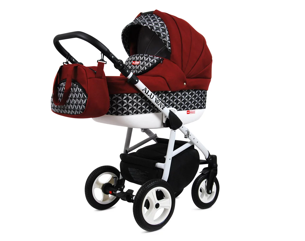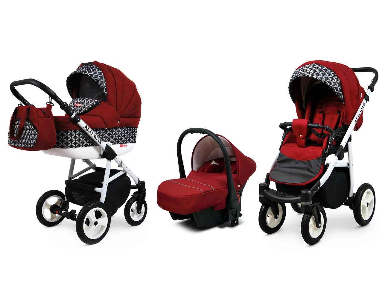 3 in 1 Luxury Stroller and Car Seat - Alu Way Pram Pushchair and Car seat by Babylux- In Optical Chili