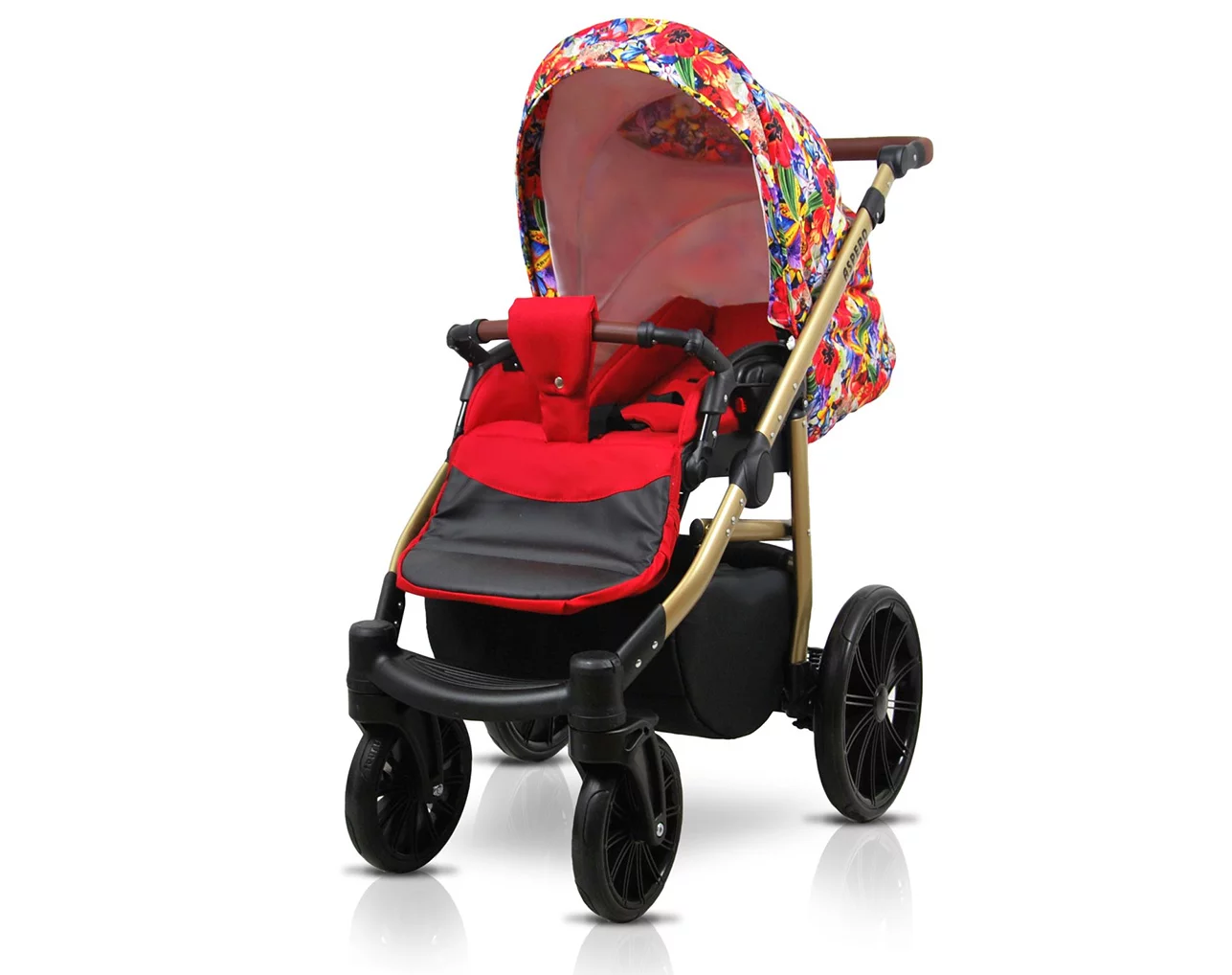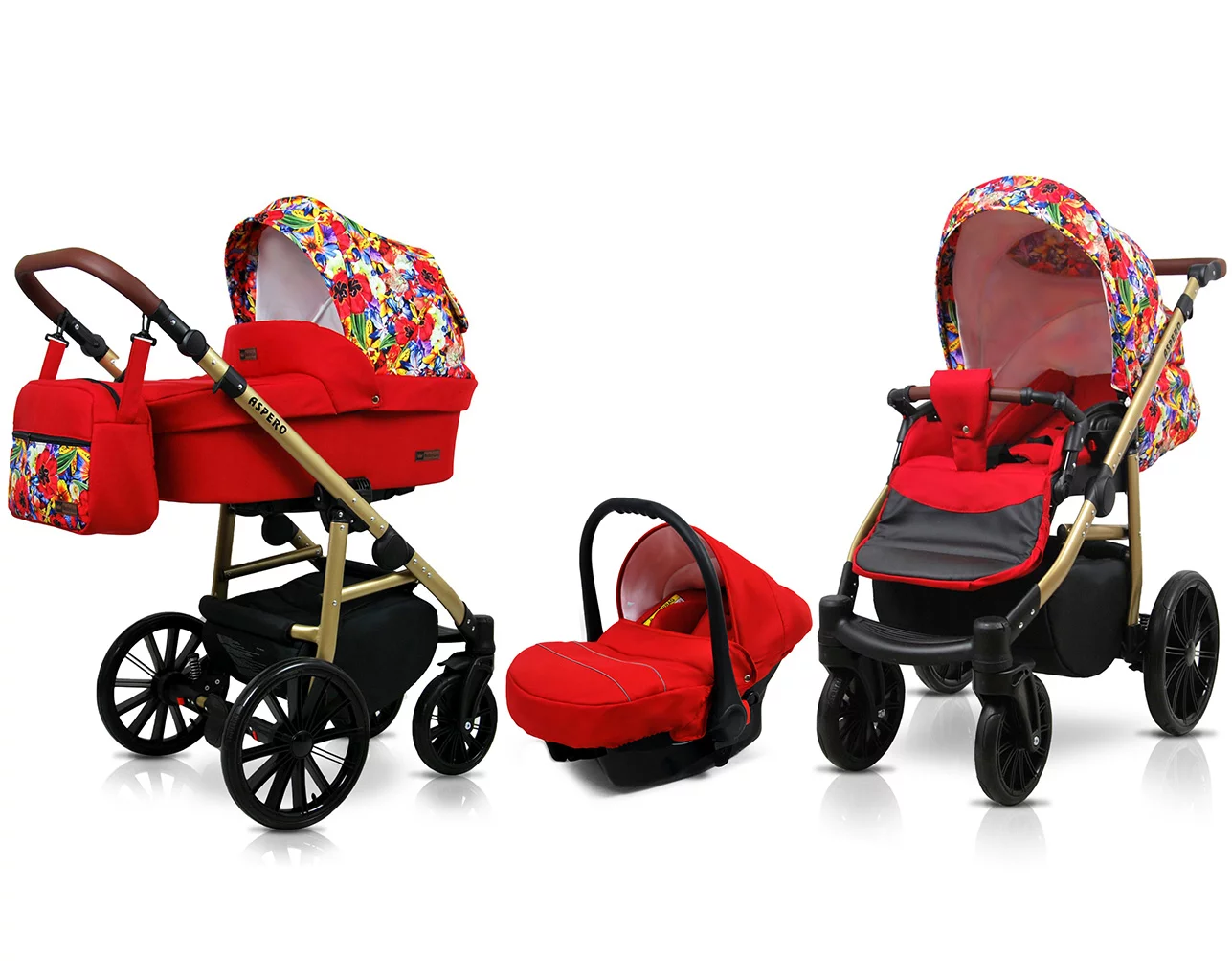 3 in 1 Luxury Stroller and Car Seat – Aspero Pram Pushchair and Car seat by Babylux- In Red Tulips